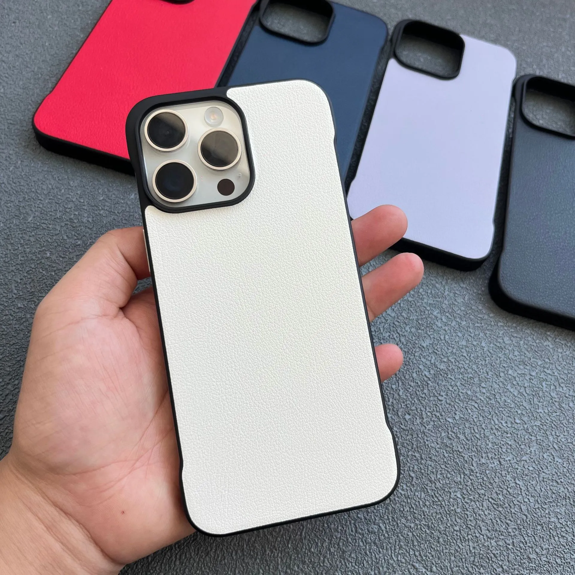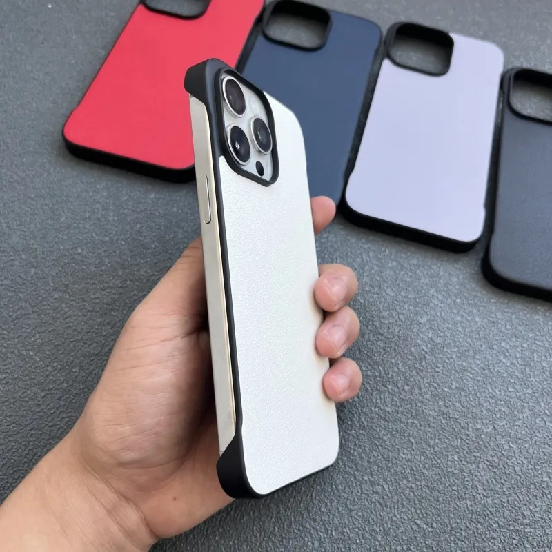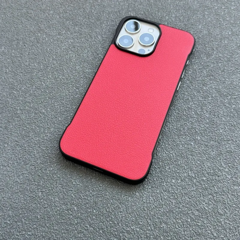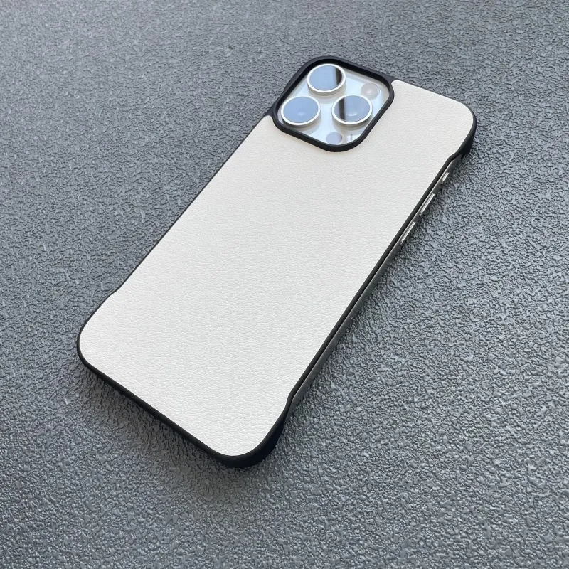 Crafted from premium leather, this frameless protective cover offers a sleek, minimalist look while adding a touch of sophistication. The soft yet durable material provides a comfortable grip and ensures your phone looks stylish in any setting.
