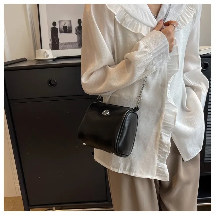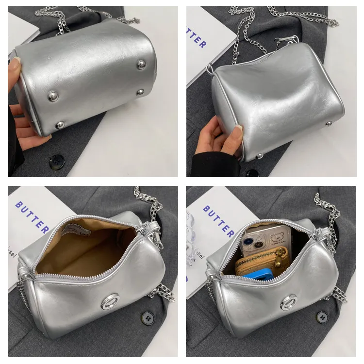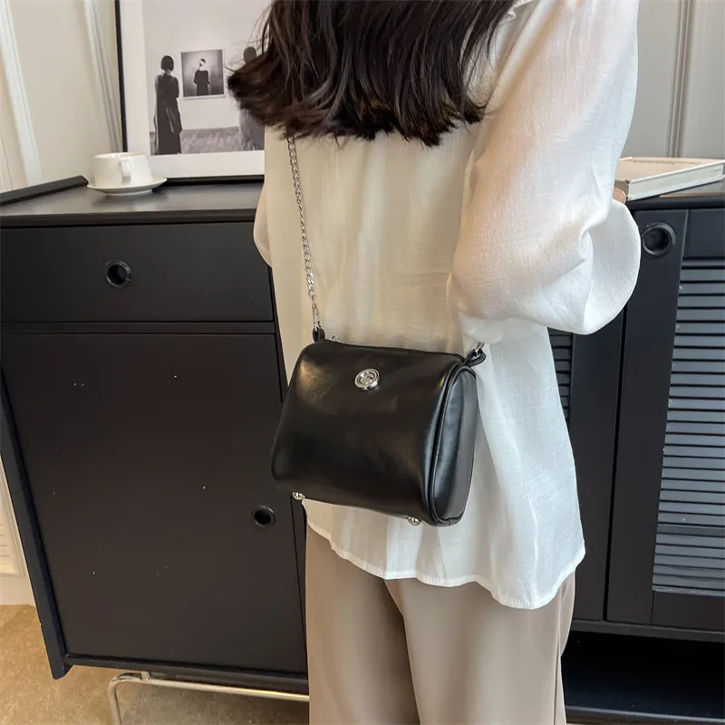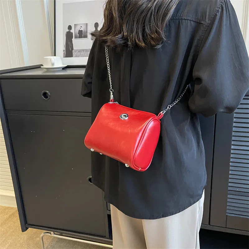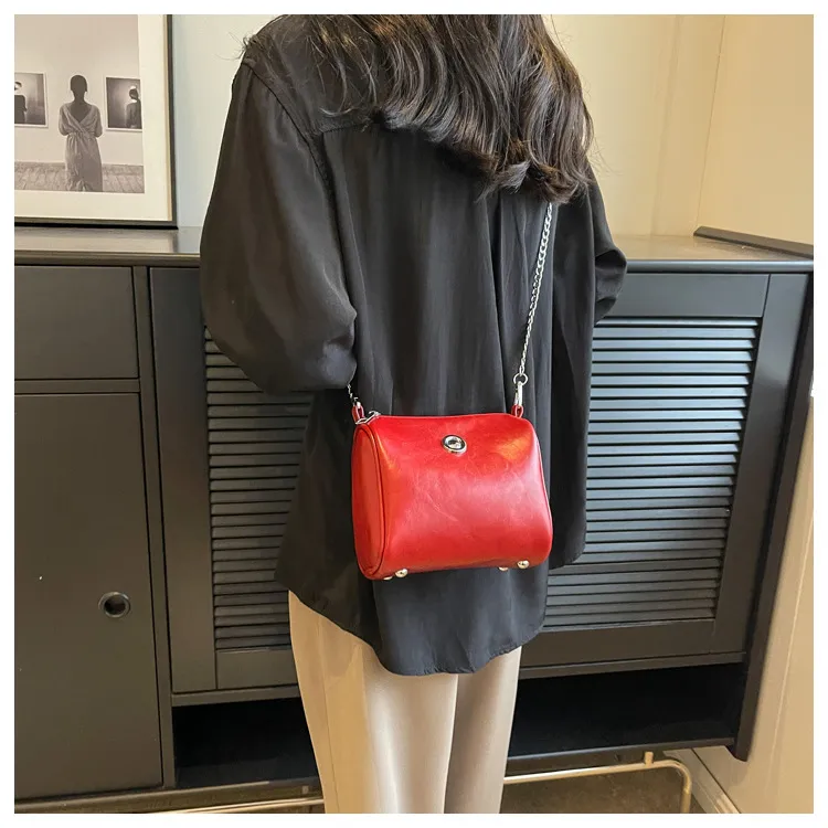 Pillow Oil Wax Leather Chain Crossbody Shoulder Bag