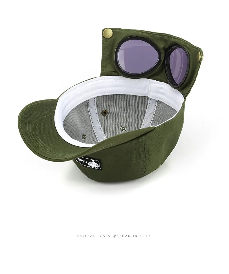 Pilot-Inspired Design: Combining a classic pilot hat with personalized glasses, this cap offers a unique and stylish look
