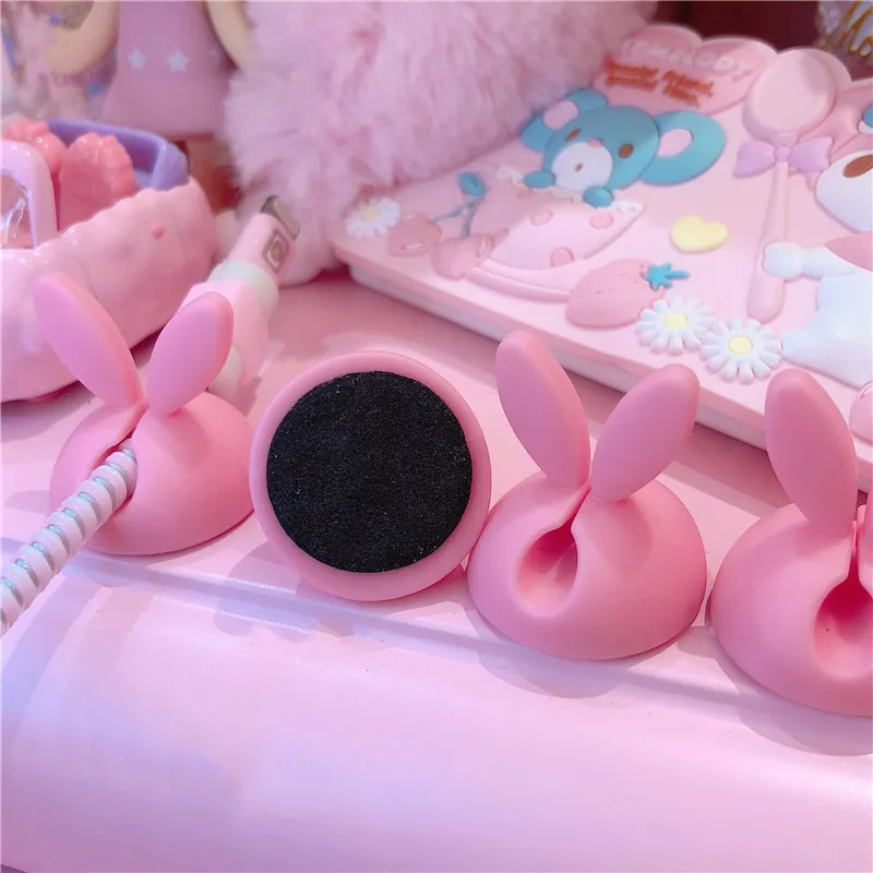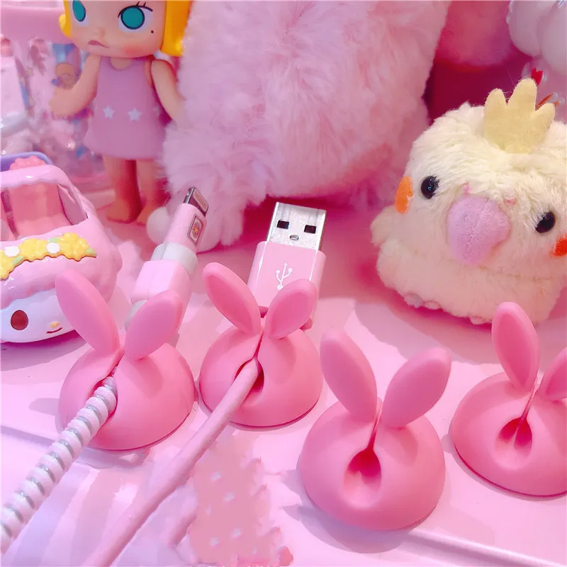 Pink Bunny Ears 4 PCs Data Cable Table Fixer: Cute and Practical Cable Management