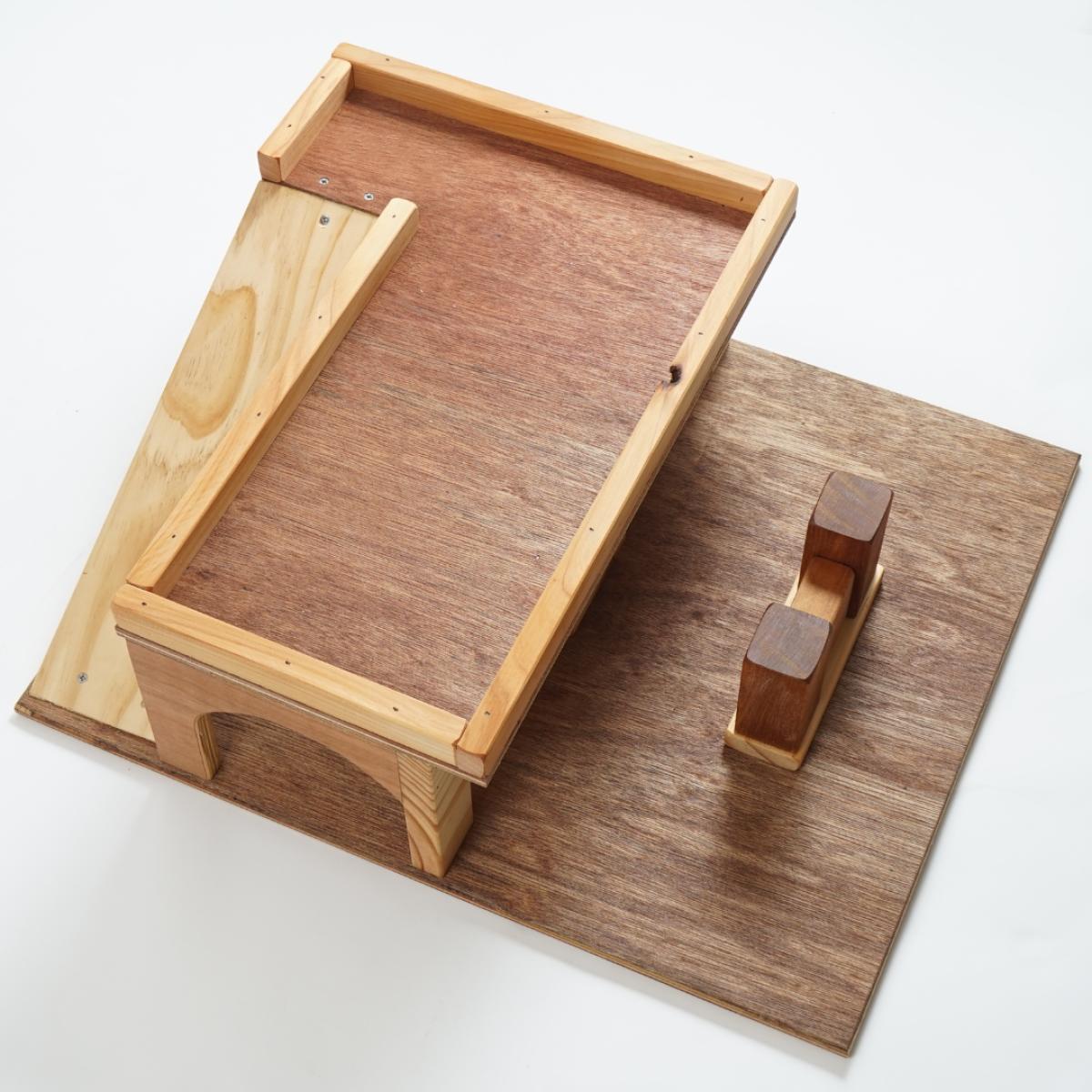 510mm W x 570mm D x 195mm H, is crafted from 18mm untreated plywood and accented with recycled native timber, embodying durability and