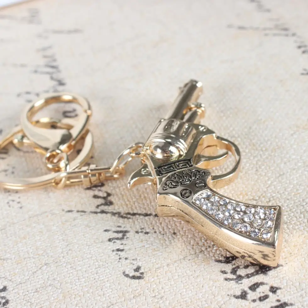Despite its flashy nature, a key ring must remain functional. Typically, these pistol charms measure a few centimeters in length, small enough not to weigh down pockets or bag straps uncomfortably. The rhinestones shouldn’t be sharp or prone to snagging on clothes. If the manufacturer invests in quality production, the ring mechanism (like the metal loop or clasp) should be sturdy enough to support daily usage. A convenient clasp—perhaps a lobster claw or spring ring—facilitates quick attachment or detachment from bags, so you can move the charm between uses with ease.