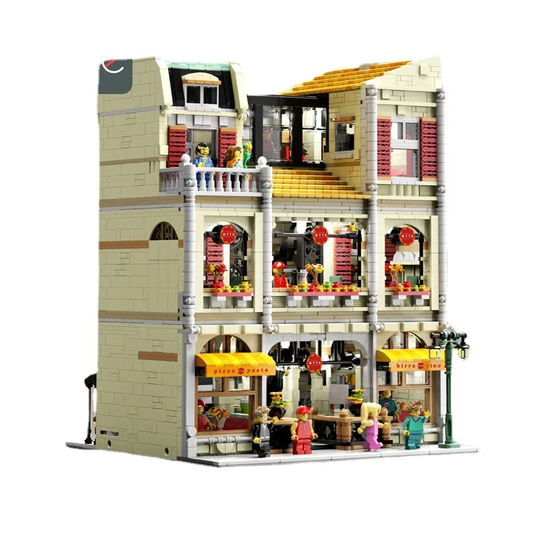 The Pizza Shop Street View Series Town Scene High-Difficulty Building Blocks Toy Model lets you create a bustling town centerpiece with an authentic pizza shop at its heart. Designed for advanced builders, this detailed set features intricate architectural details, town scene elements, and vibrant colors to bring the joy of an Italian pizzeria to life.