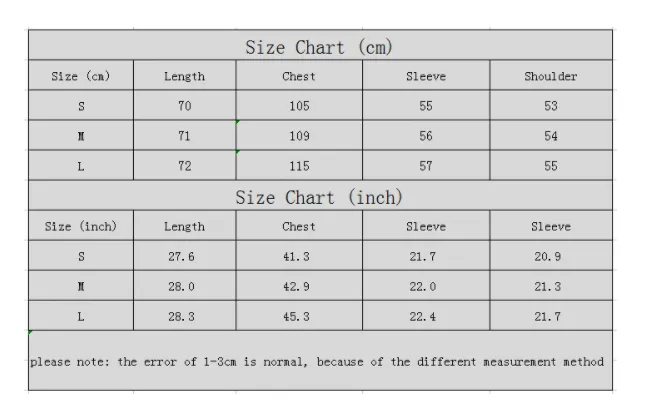 allow 2-3cm differences due to manual measurement.