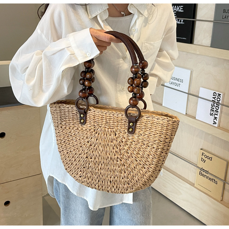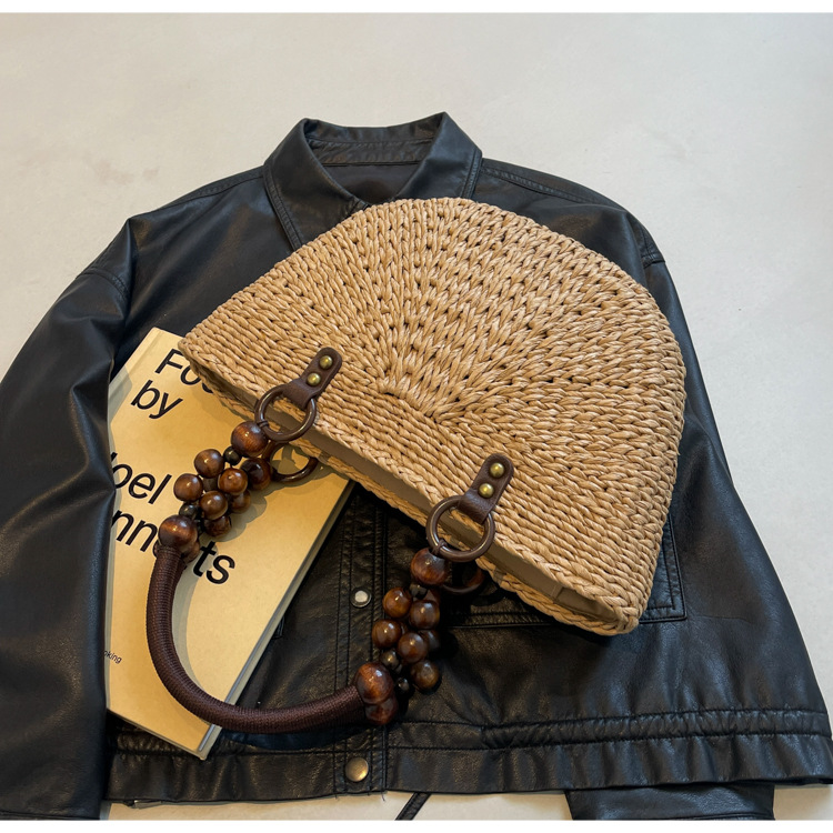 - Stylish Design: Featuring a unique semicircle shape, this handbag stands out with its intricate plaited design. The natural tones and texture add a rustic charm that complements any summer outfit.