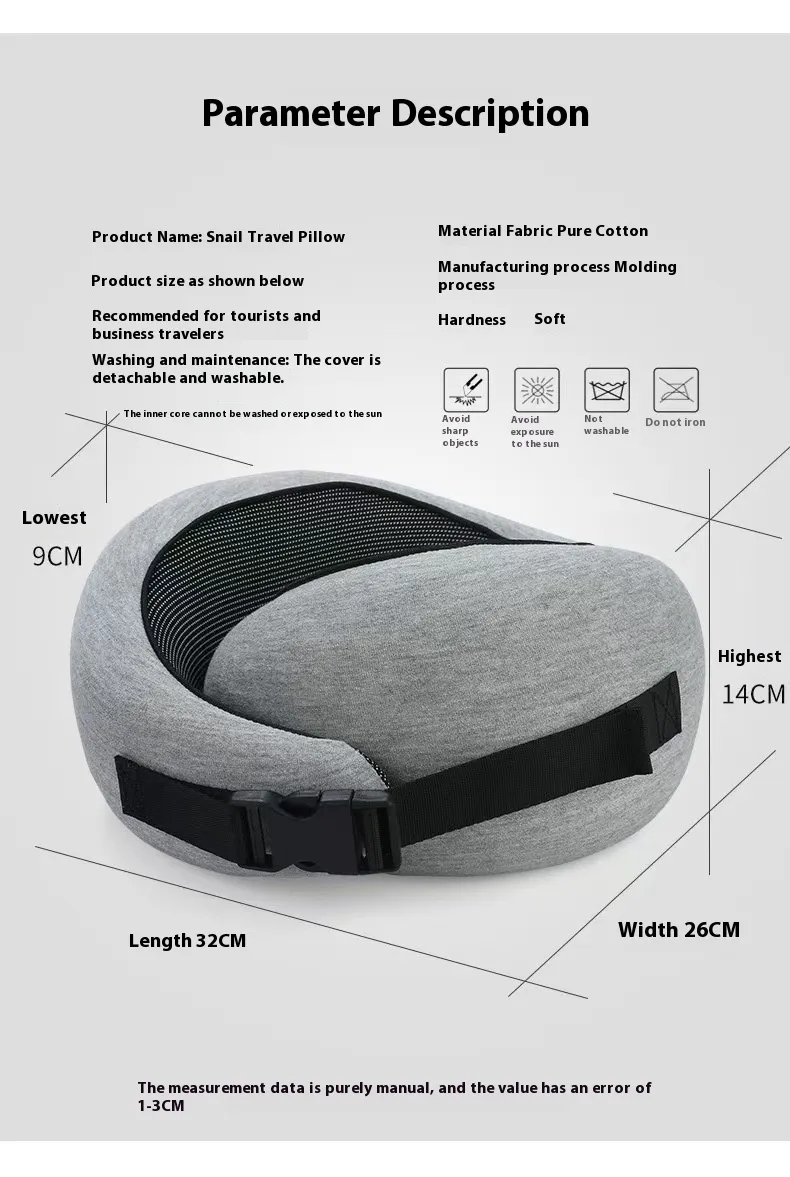 color Velcro (including black cross-country package), snail U-shaped pillow-dark gray Buckle (including black cross-country package), snail