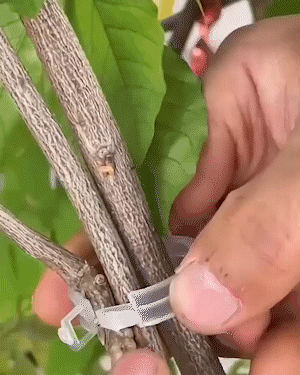 plants grafting, clipping the branch of one plant on another plant to allow them grow as one.