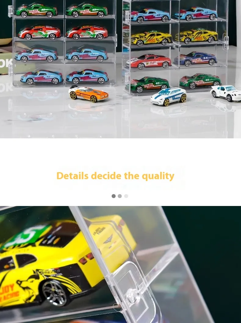 The most significant feature of plastic display boxes is their transparent design. Made from high-quality acrylic or clear plastic, these boxes offer a crystal-clear view of your model cars, allowing you to showcase every detail without obstruction. The clear design ensures that your models are the focal point, making them the perfect choice for collectors who want to display their collection proudly.