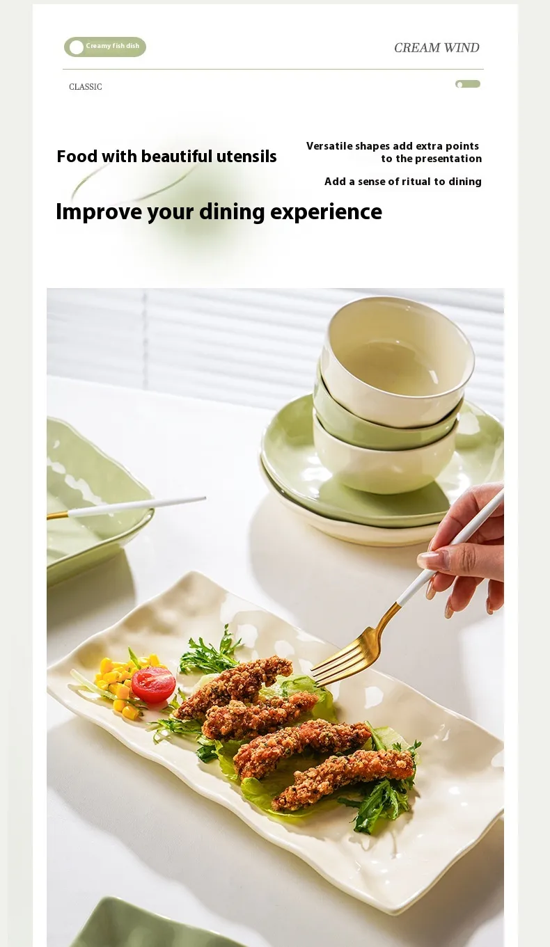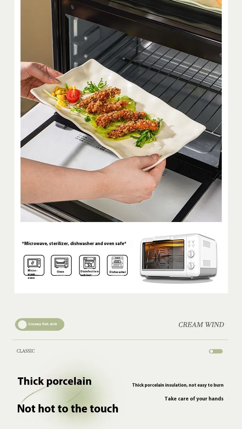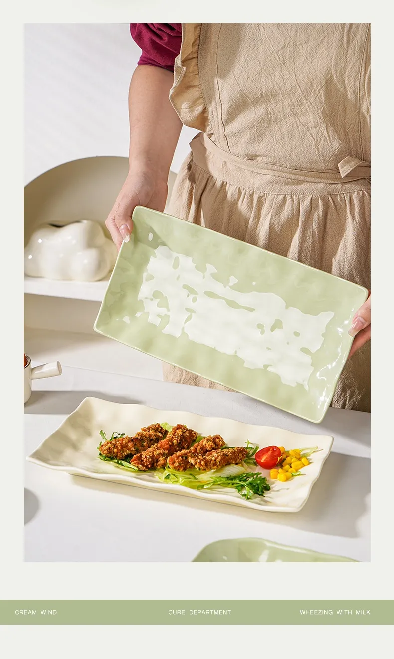 Color: 12-inch rectangle fish dish-milky yellow (cream yellow)