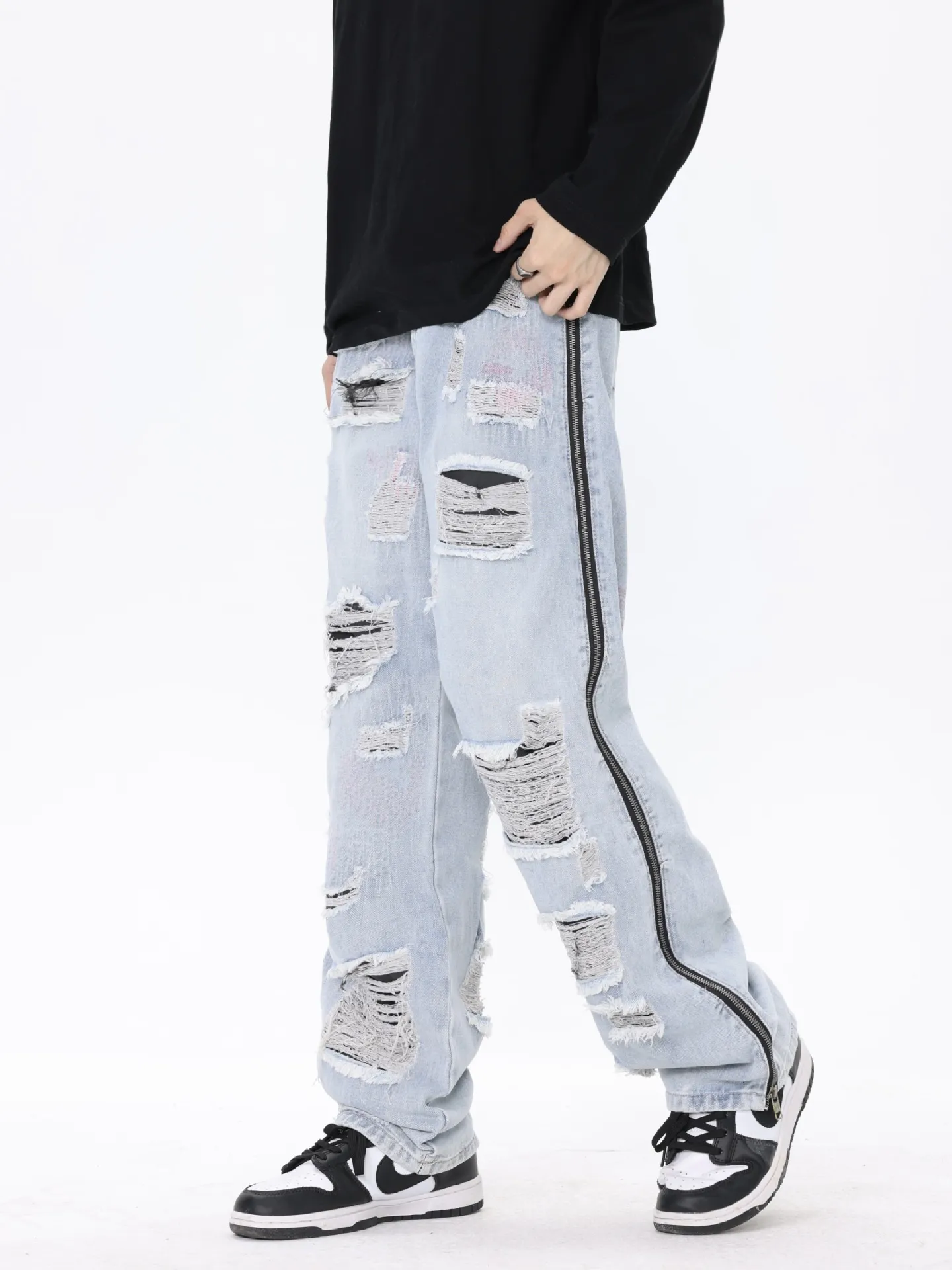 The distressed ripped design adds an element of fun and casual coolness, making them perfect for both relaxed and semi-casual occasions.