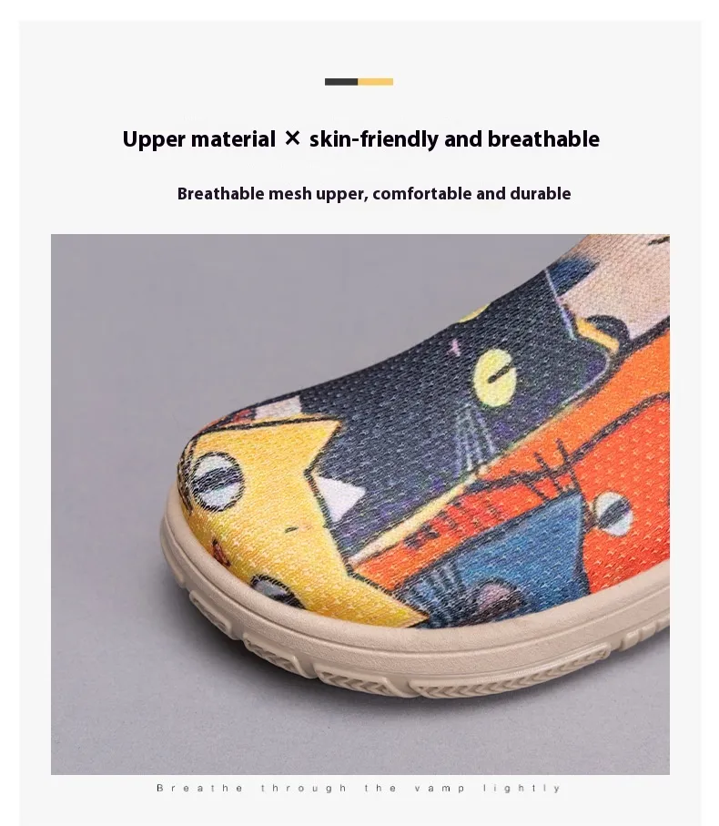 The slip-on design ensures easy wear without fussing with laces or buckles. The soft insole offers gentle arch support, while the flexible rubber sole provides excellent traction and stability on various surfaces.