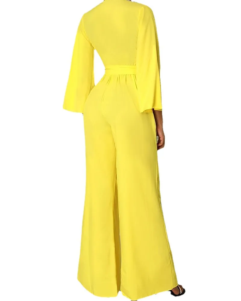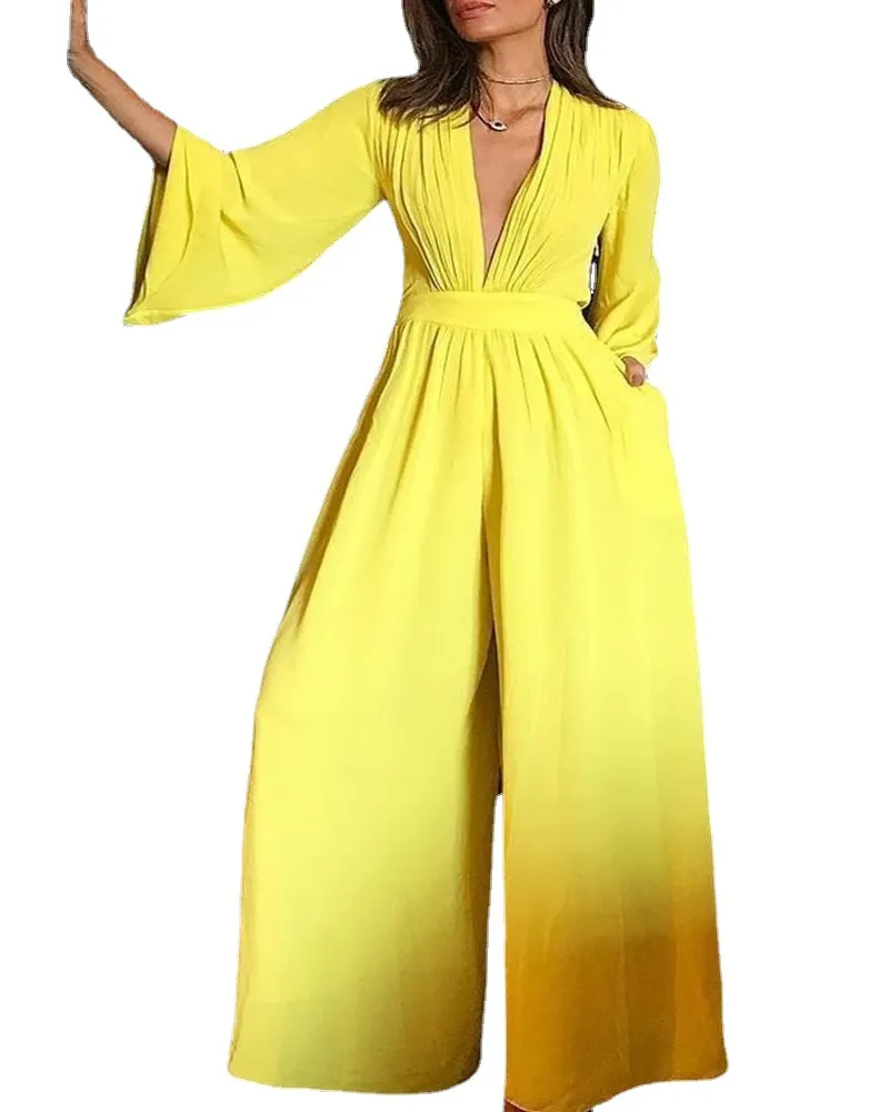 The bright yellow hue of this jumpsuit is perfect for those who want to stand out in a crowd. Whether you're wearing it for a day out in the sun or an evening event, the striking yellow color adds a touch of sunshine and positivity to your look. Yellow is known for its cheerful, energetic vibe, making it the perfect choice for adding a pop of color to your wardrobe. This jumpsuit ensures that you turn heads with its bold color and modern style.