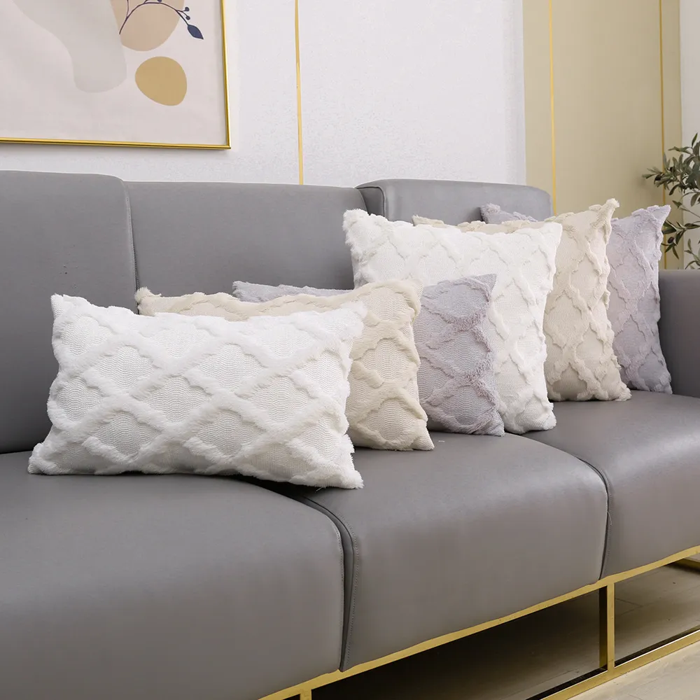 Plush Embroidered Diamond Pillow Cover
