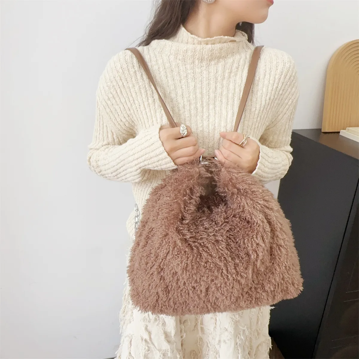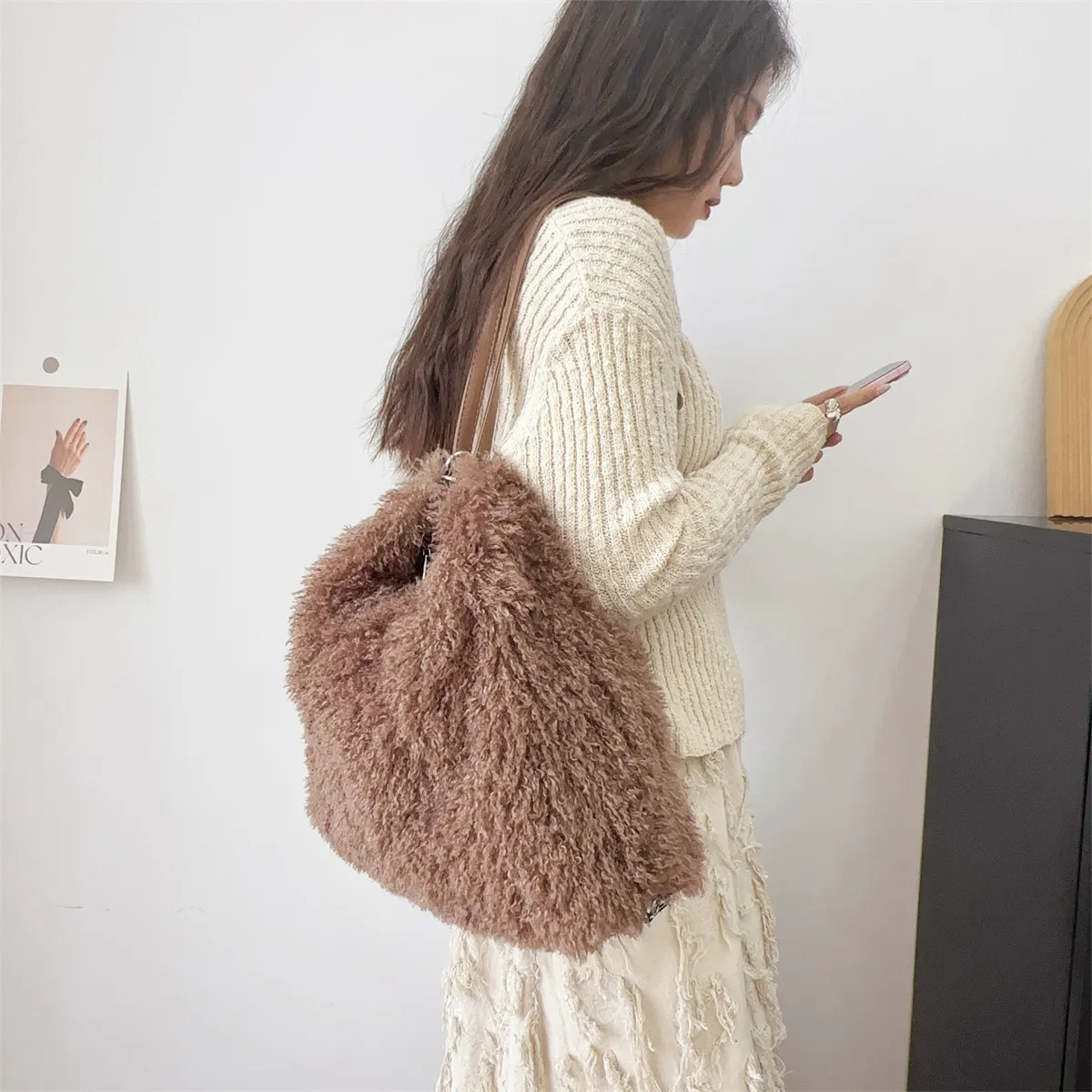 Plush Hand-Carrying and Shoulder Bag: Large-Capacity Winter Accessory