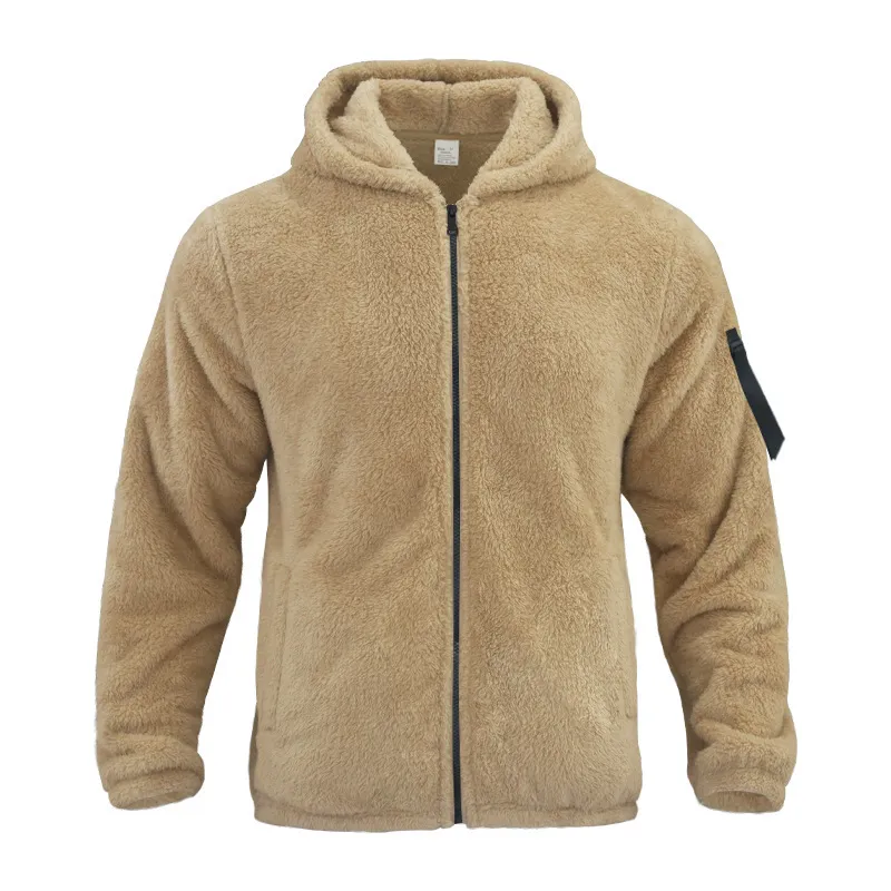 Plush Hooded Jacket Men's Autumn And Winter Fleece Double-sided Wear Warm Coat With Zipper Loose Casual Jacket Outdoor Clothing