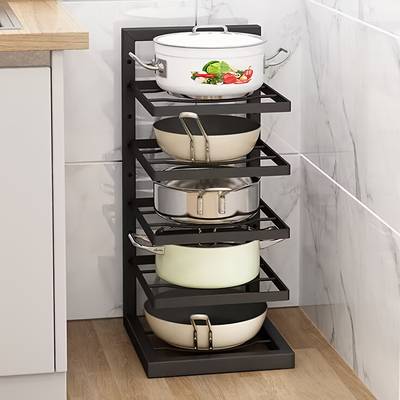 PMMJ Height Adjustable Three and Four Tier Pot Rack Space-Saving Kitchen Storage for Pots and Household Supplies