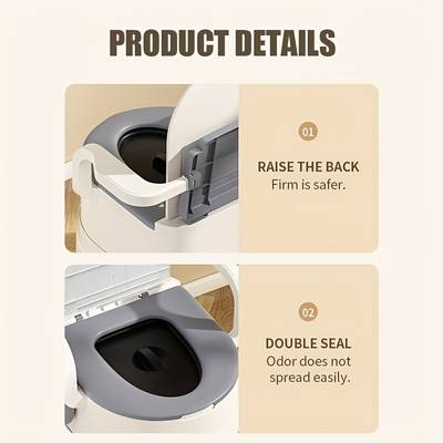 This portable toilet is crafted with a strong PP plastic frame and a comfortable-height seat that makes sitting and standing easier. The double-layer odor-sealing system helps reduce unpleasant smells, while the non-slip full-surround base keeps the unit stable during use.