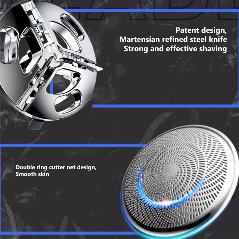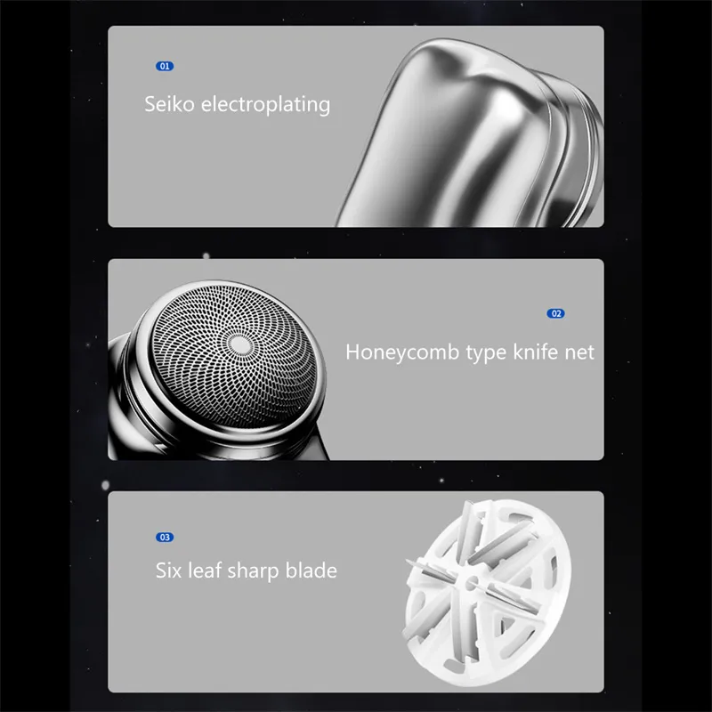 2. 6-blade electric shaver: The mini electric shaver uses a sharp 6-blade stainless steel turbine vortex blade, which is specially used for