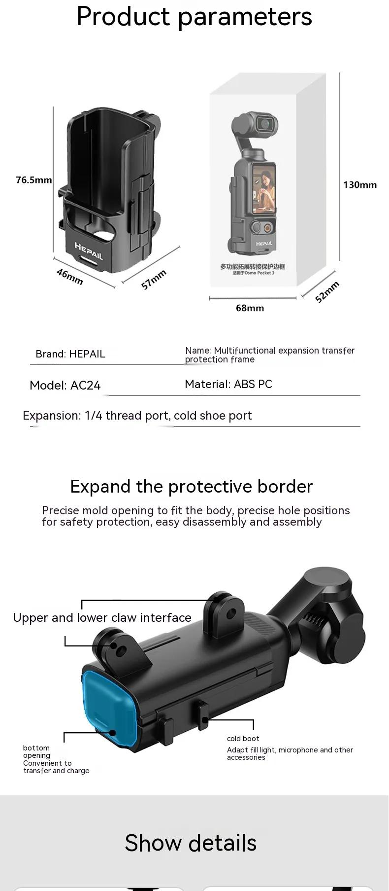 Pocket3 Extension Parts Protection Frame Extension Handle Cold Shoe Adapter Bracket