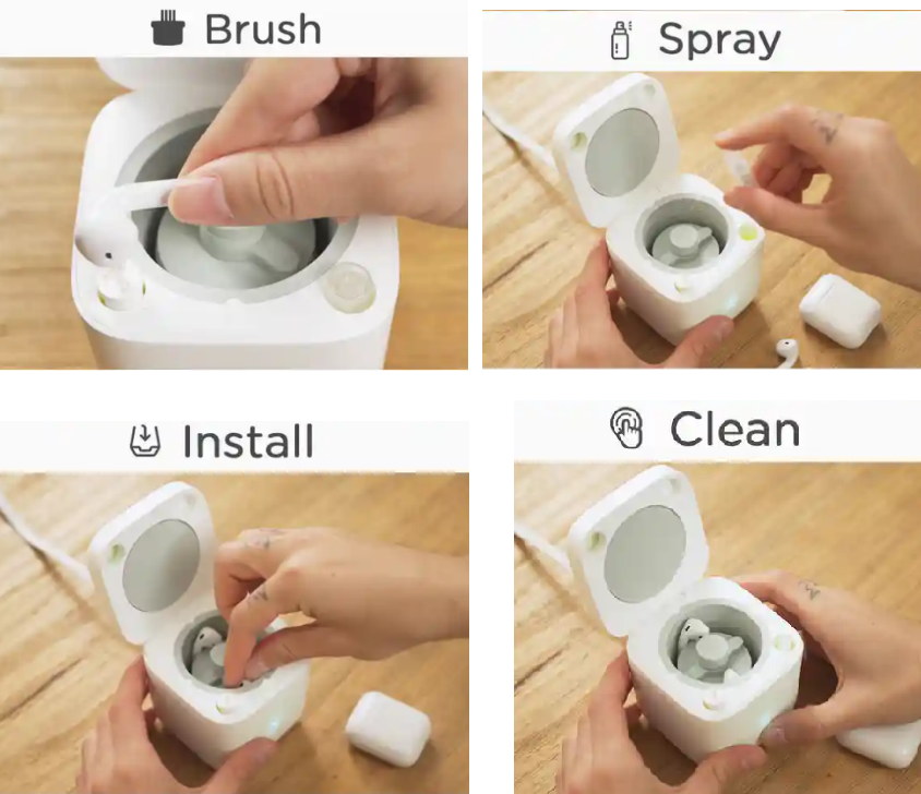 But it doesn't stop there. This kit also includes a revolutionary drying station equipped with UV-C light technology, designed to eliminate 99.9% of germs and bacteria lurking on your earphones. Simply place your earphones in the docking station after cleaning, and let the power of UV-C light work its magic, leaving your earphones fresh, dry, and ready for your next listening session.