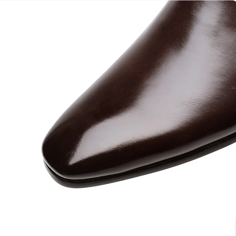Pointed Toe Chelsea-style Boots For Men Fashion British Style Square Heel Business Formal Leather Shoes