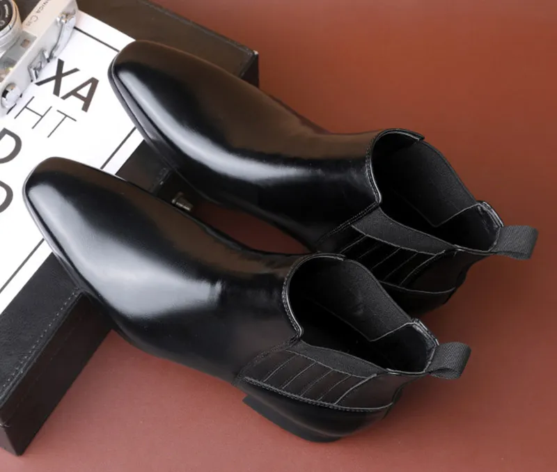 The Pointed Toe Chelsea-style Boots for Men are a must-have for anyone looking to elevate their style with a classic, versatile pair of boots. With their sleek pointed toe design, premium leather construction, and square heel for stability, these boots offer a unique combination of fashion, comfort, and durability. Perfect for business, formal, or casual settings, they are sure to become a staple in your wardrobe.