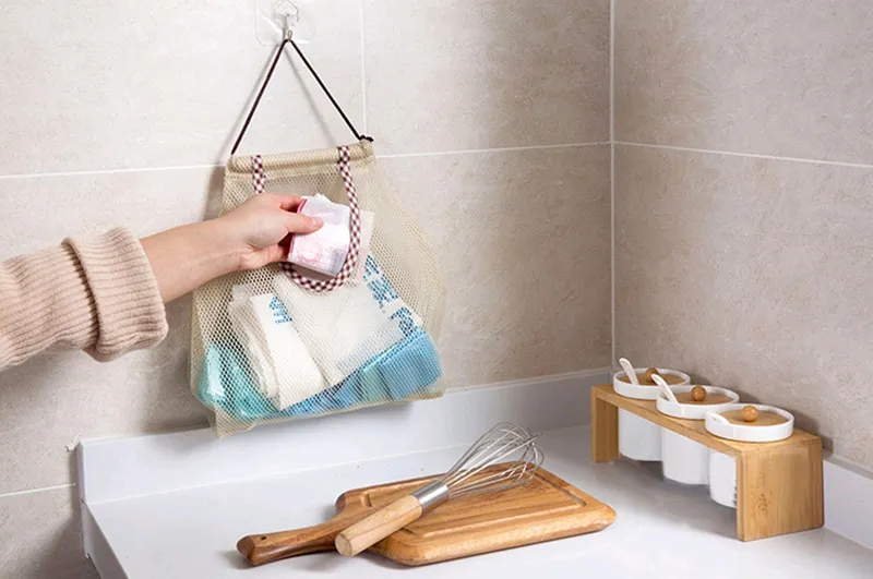 Keep small kitchen items such as measuring spoons, peelers, and kitchen towels in the mesh bags. You’ll always know where your tools are, and the breathable design keeps everything dry and organised.