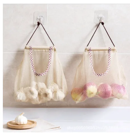 Polyester Mesh Kitchen Storage Bag Portable Net Bag Shopping Bag Home Storage Wall Shelves Kitchen Accessories