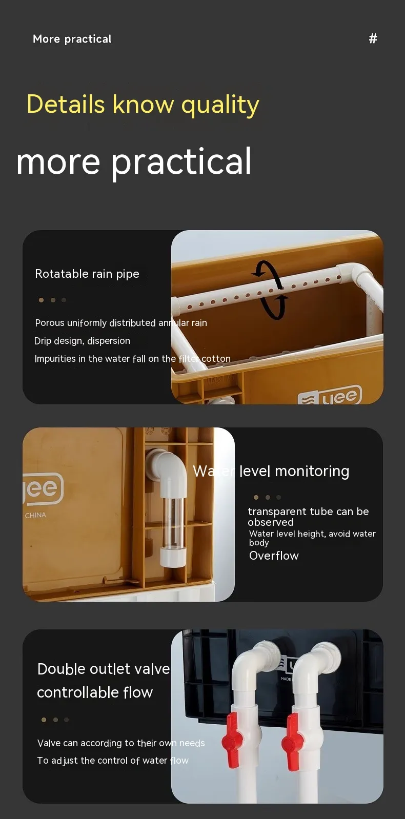 Whether you have a koi pond, garden pond, or decorative water feature, the Pond Overflow Box is suitable for a variety of pond types and sizes. Its versatility ensures that it can be used in both small backyard ponds and larger decorative setups.