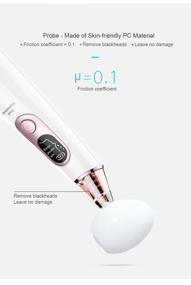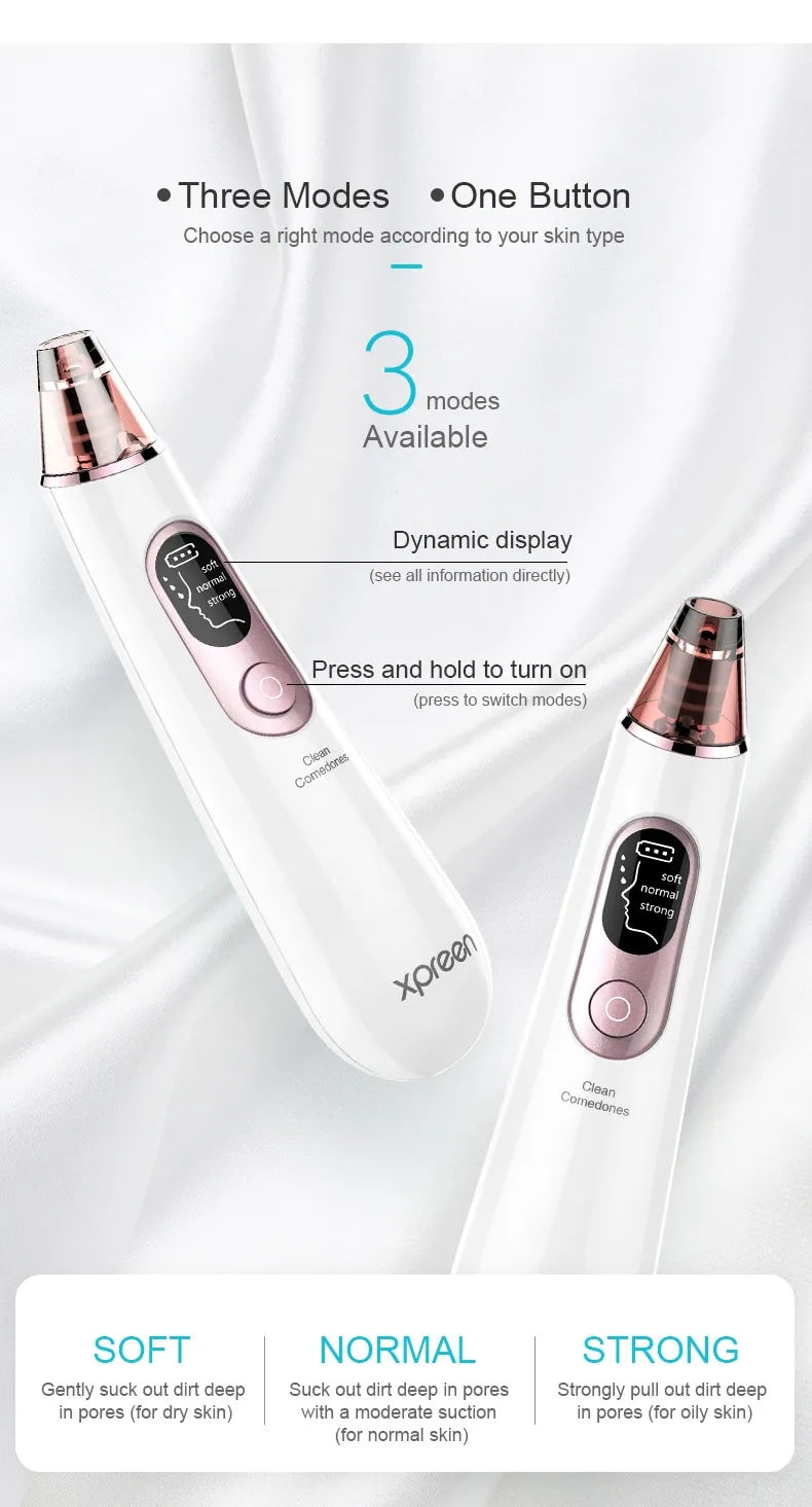 The built-in LED screen displays suction levels and battery status, making it easy to monitor and control your pore cleaner during use.