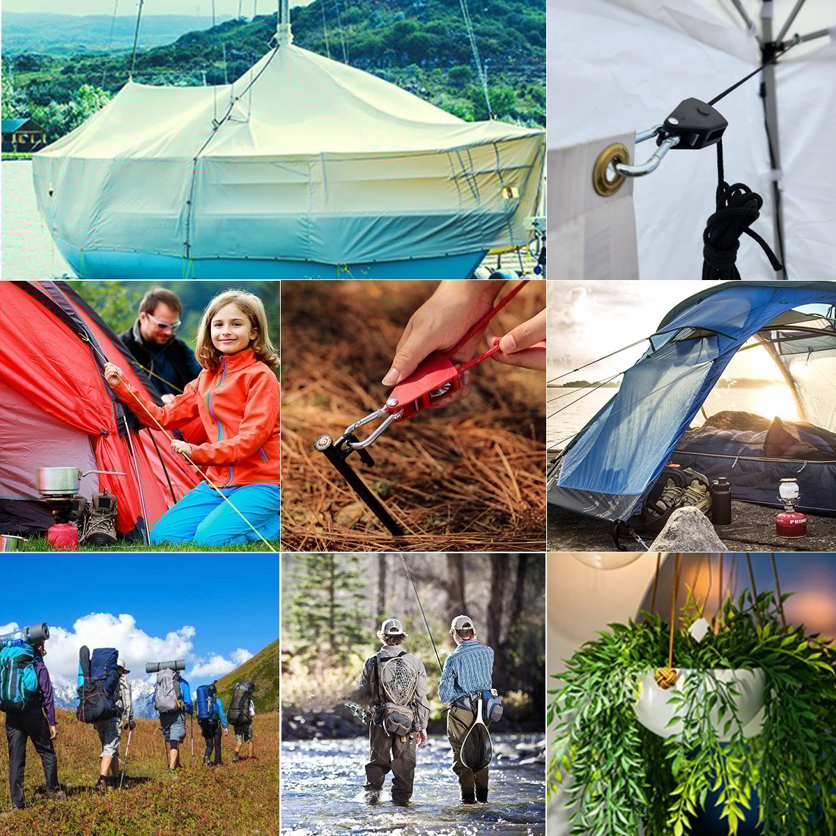 ð³Make Camping Easier and Faster:Â Only need hook the hammock,tent tarp or tent stakes by the carabiners,then use the pulley to adjust the rope length for you need,reduce the set up time and eliminates time-consuming hitch knots;