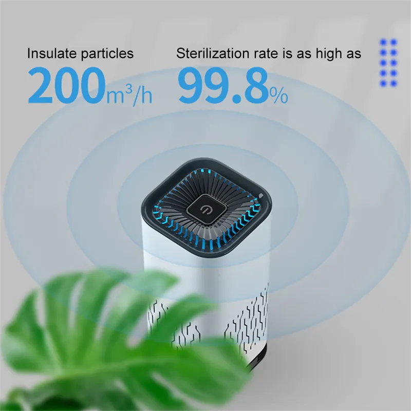 Powerful air filter, cleans your personal air, away from 99.98% dust, pollen, pet dander, smoke and odor, help to alleviate allergies, and is the ideal choice for any desktop, table, car, product purification effect up to 200m ³/ H particulate matter Cadr.