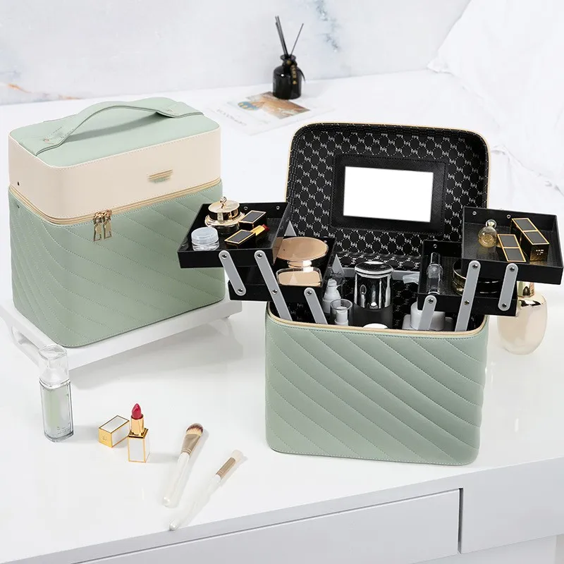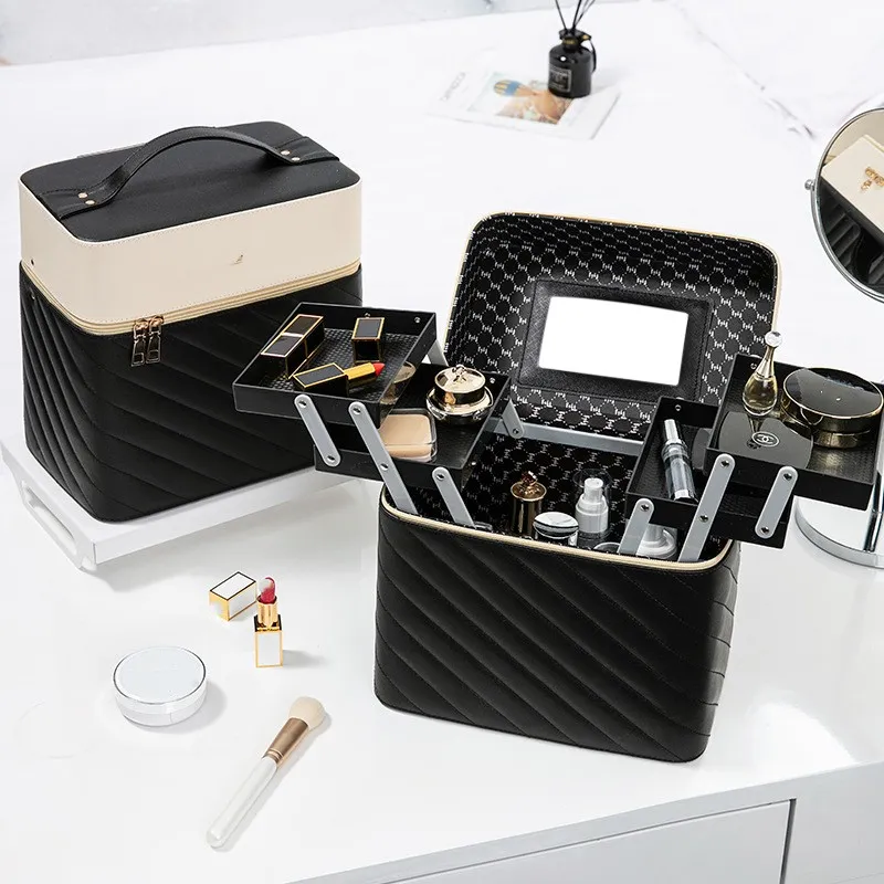 - Multiple compartments: Features adjustable trays and compartments to organize various beauty essentials, including makeup, jewelry, and nail products.