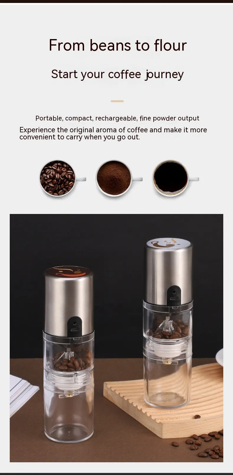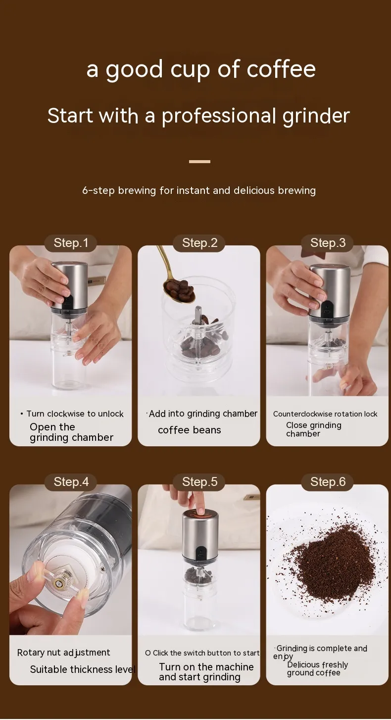 The Portable Coffee Machine with Hand-Made Coffee Bean Grinder is the ultimate companion for coffee enthusiasts who value fresh, flavorful brews. Designed specifically for one-person households, this portable device combines a coffee machine and grinder into one sleek unit. Whether at home or on the go, you can enjoy the rich aroma and taste of freshly brewed coffee with minimal effort.
