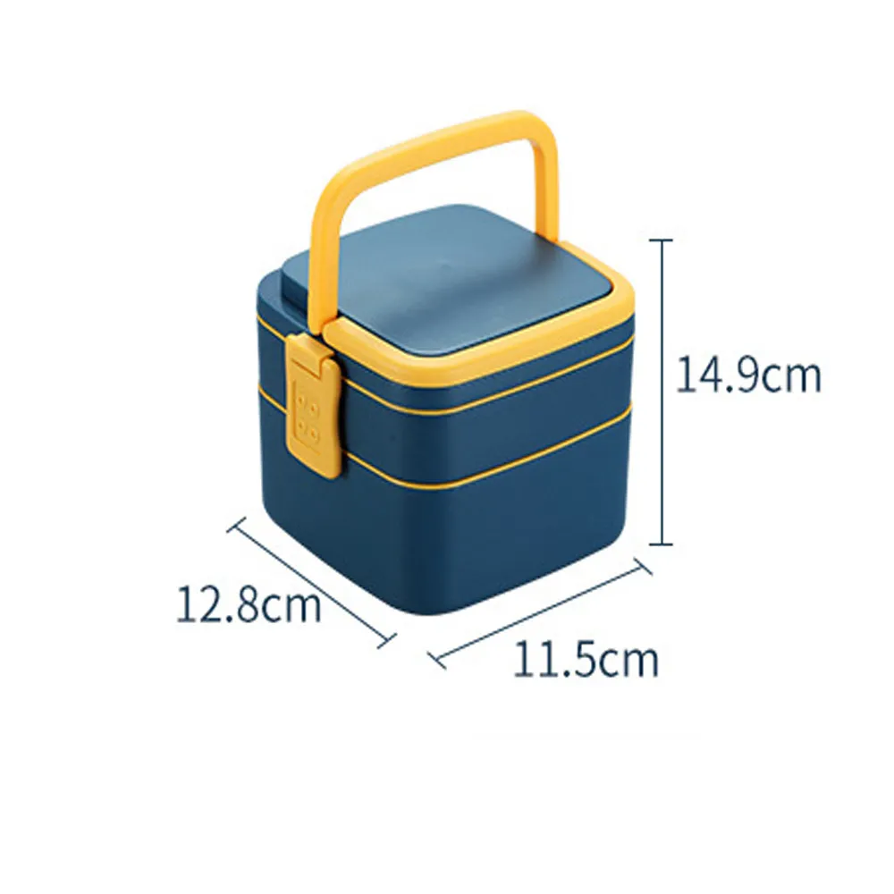 Introducing the Portable Double-Layer Square Bento Box with Tableware