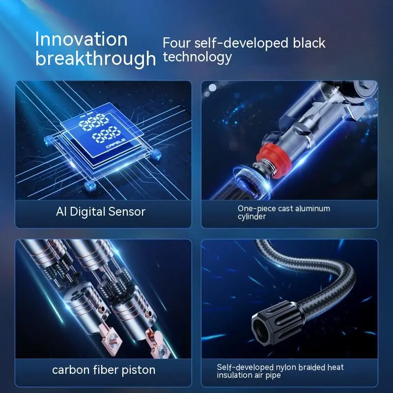 - The digital display on the air pump provides clear, real-time information about tire pressure, helping you monitor the inflation process with precision.