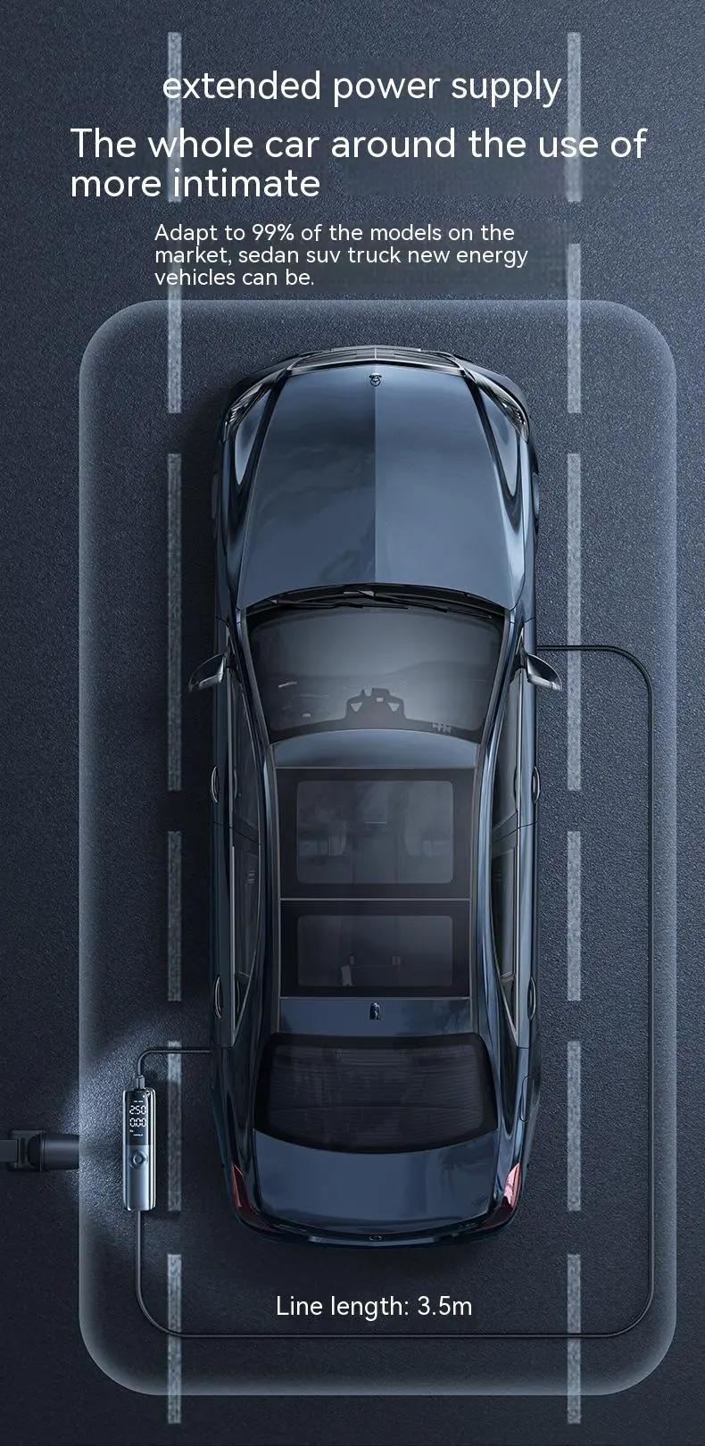 - The Portable Electric Vehicle Car Speed Air Pump is the perfect accessory for ensuring your tires remain properly inflated, maintaining your EV’s energy efficiency and safety on the road.