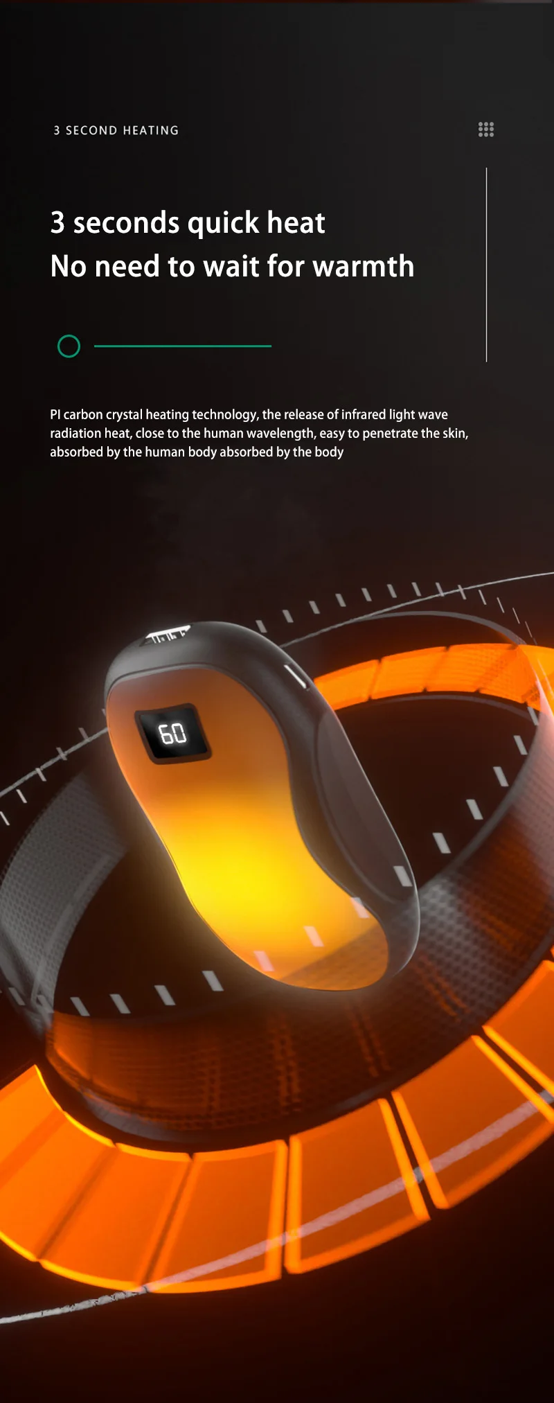 Experience instant comfort with the fast-heating technology that warms up in seconds. Unlike traditional hand warmers, this device provides double-sided warmth, ensuring both hands are evenly heated for maximum comfort. With adjustable heat settings, you can choose your desired level of warmth to suit various temperatures and personal preferences.
