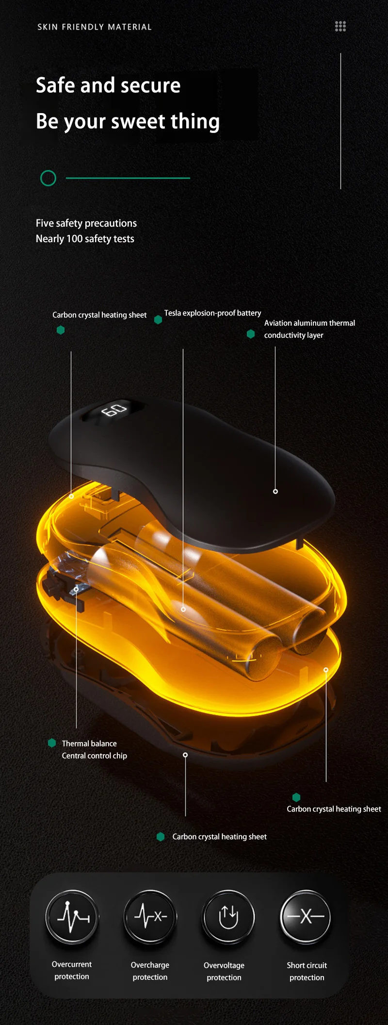 4.Enhanced Safety: Our USB hand warmer provides various safety protection features such as overcurrent, overvoltage, and short-circuit