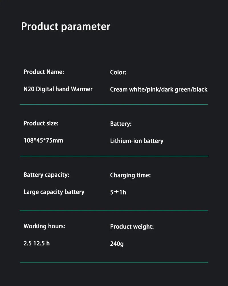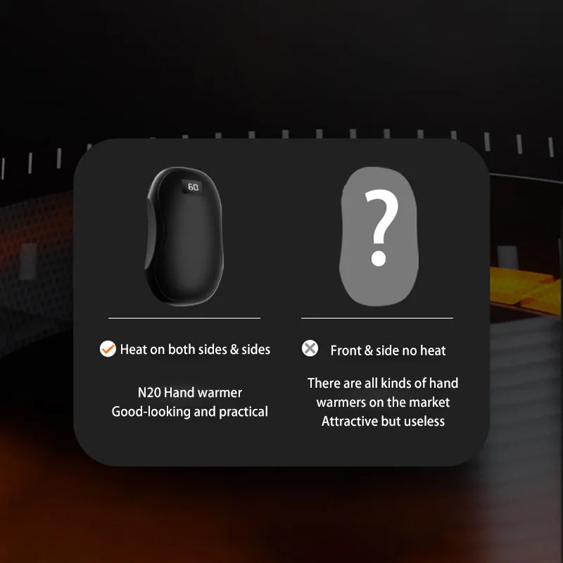 Stay warm and cozy this winter with the Portable Hand Warmer 50000mAh. Designed for ultimate convenience and performance, this electric hand warmer features an impressive large capacity, fast heating, and double-sided warmth to keep your hands toasty in the chilliest weather. Perfect for outdoor enthusiasts, commuters, or anyone looking to combat the cold, this portable hand warmer combines functionality and modern design for a reliable winter companion.