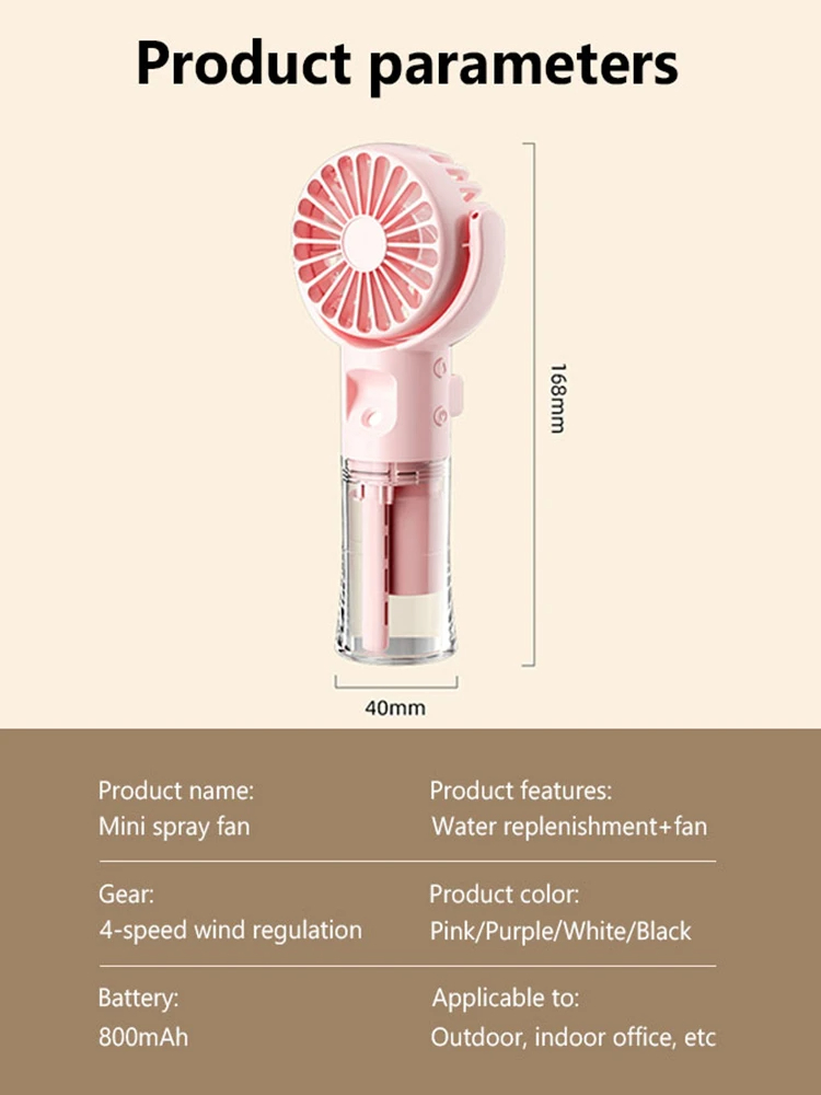 Portable Handheld Spray Fan 4-Speed