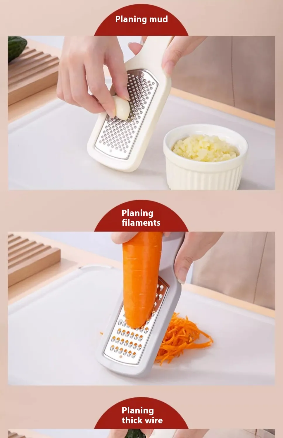 to use. The tail of the grater is provided with a hanging hole, and three graters can be stacked and hung together, saving space