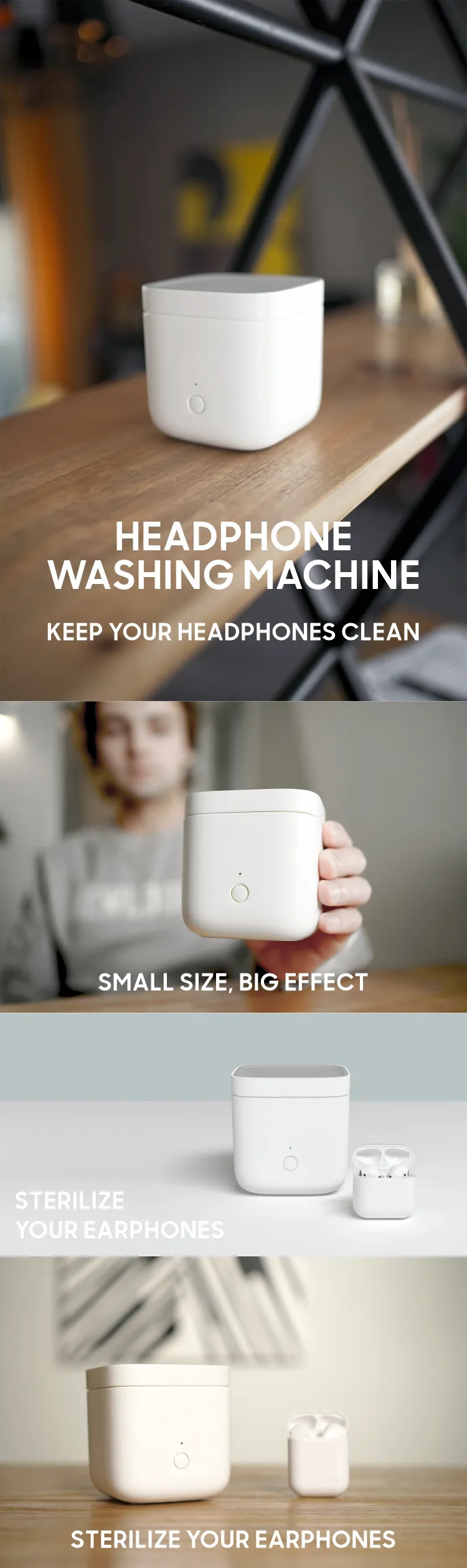 bacterial growth and ear infections. The Portable Headphone Cleaning Machine ensures that your headphones are thoroughly