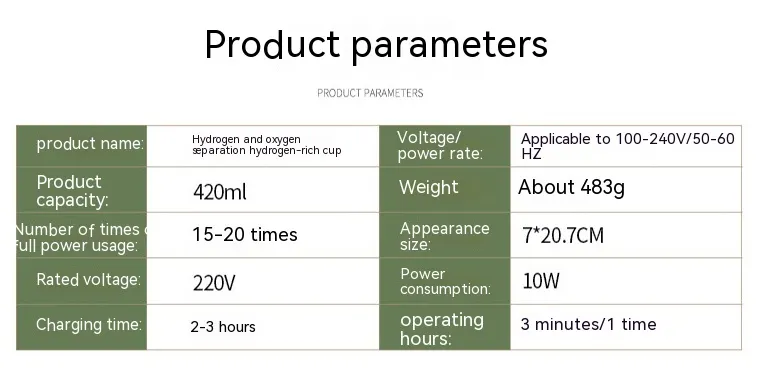 The Portable Ionized Water Cup Hydrogen Bottle is a convenient, reusable hydration solution designed for modern lifestyles. Its compact size, easy operation, and everyday usability make it suitable for home, work, fitness, and travel.