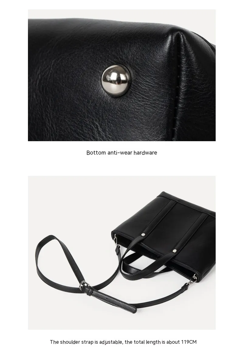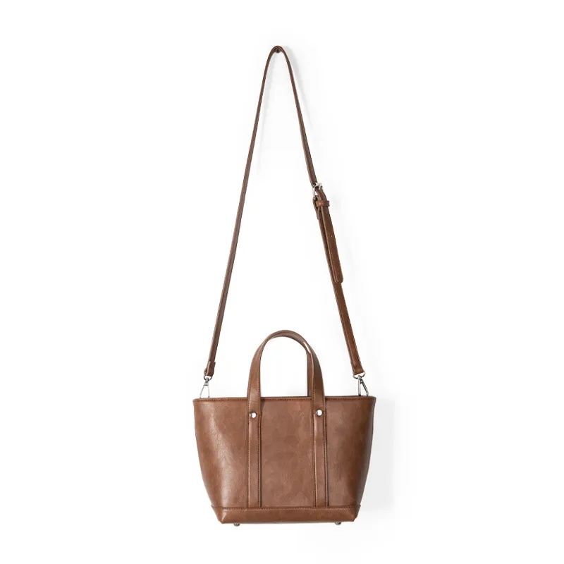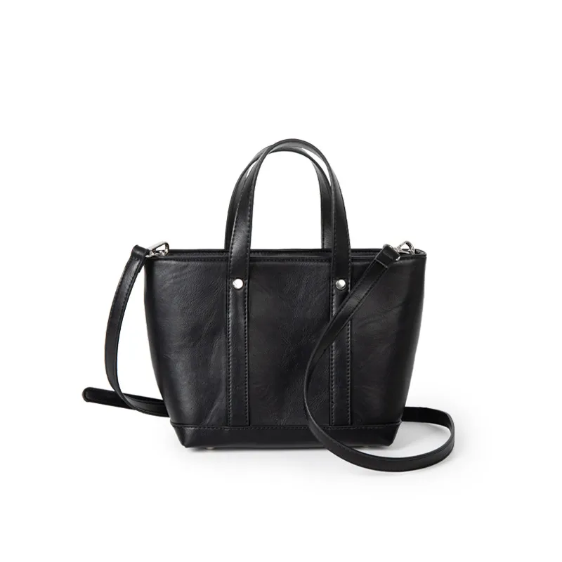 Portable Oil Wax Leather Simple Casual Korean Style Large Capacity Bag