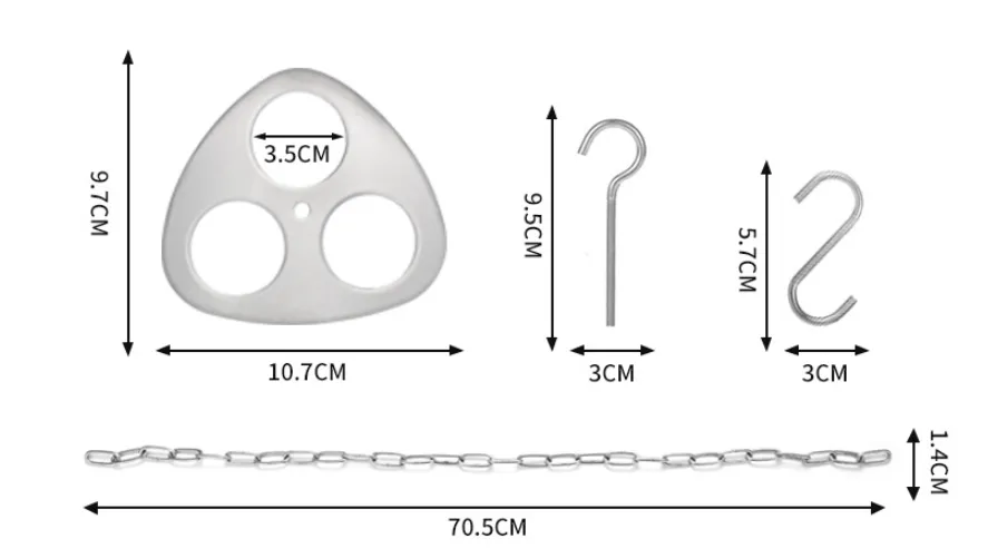 Set Configuration: Stainless Steel Disc, Hook, S Hook, Nut, Stainless Steel Chain