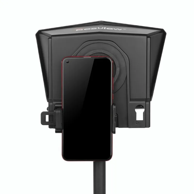 The Portable Small Cell Phone Teleprompter is compatible with most smartphones and features a universal mounting system that securely holds your device in place. With a reflective glass screen, your text is displayed clearly while allowing you to maintain direct eye contact with your viewers, making your delivery more engaging and professional. The device is easy to set up and can be adjusted to various angles, accommodating different shooting environments and preferences. Whether you're a seasoned professional or a novice content creator, this teleprompter enhances your recording experience.