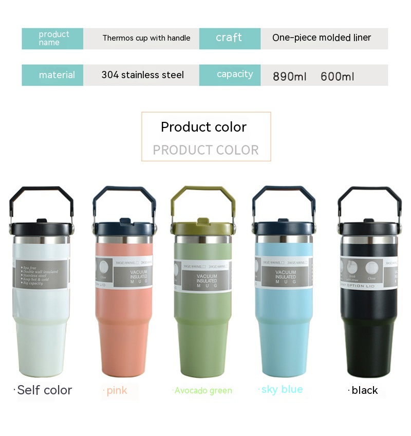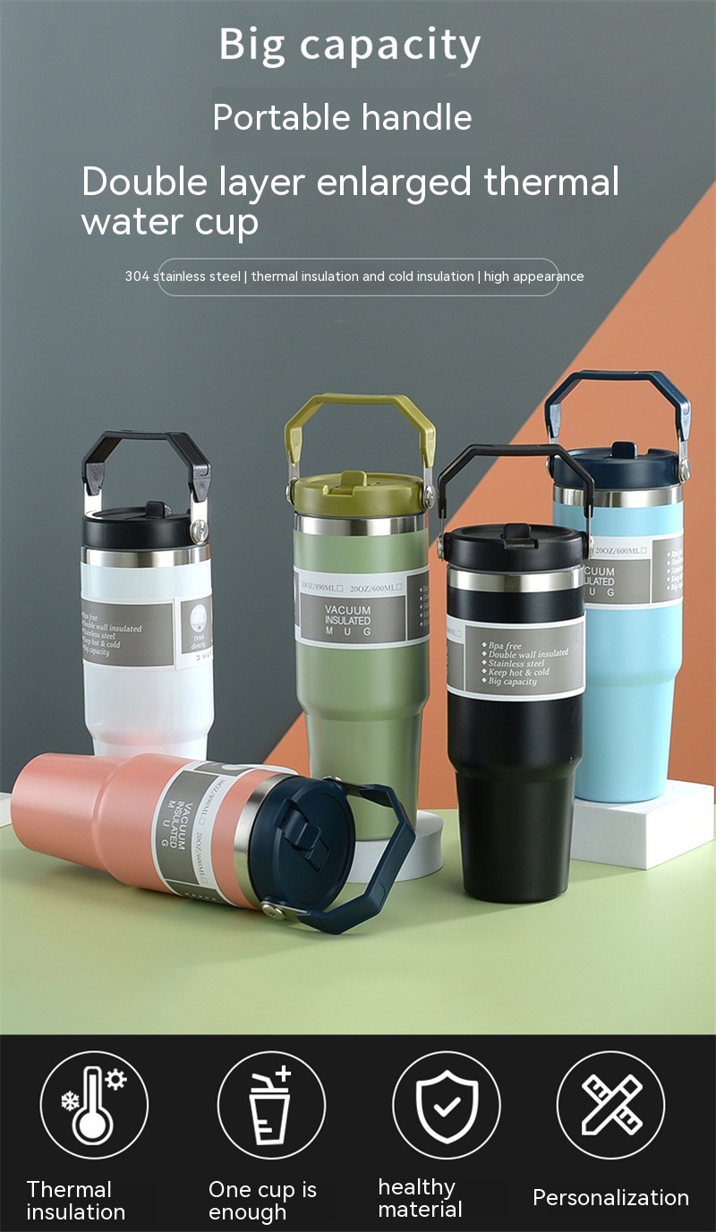 Stay hydrated on the go with our Portable Stainless Steel Travel Sports Water Bottle. Featuring a handle and cover, this versatile coffee tumbler cup is perfect for travel, sports, and everyday use.Overview:
