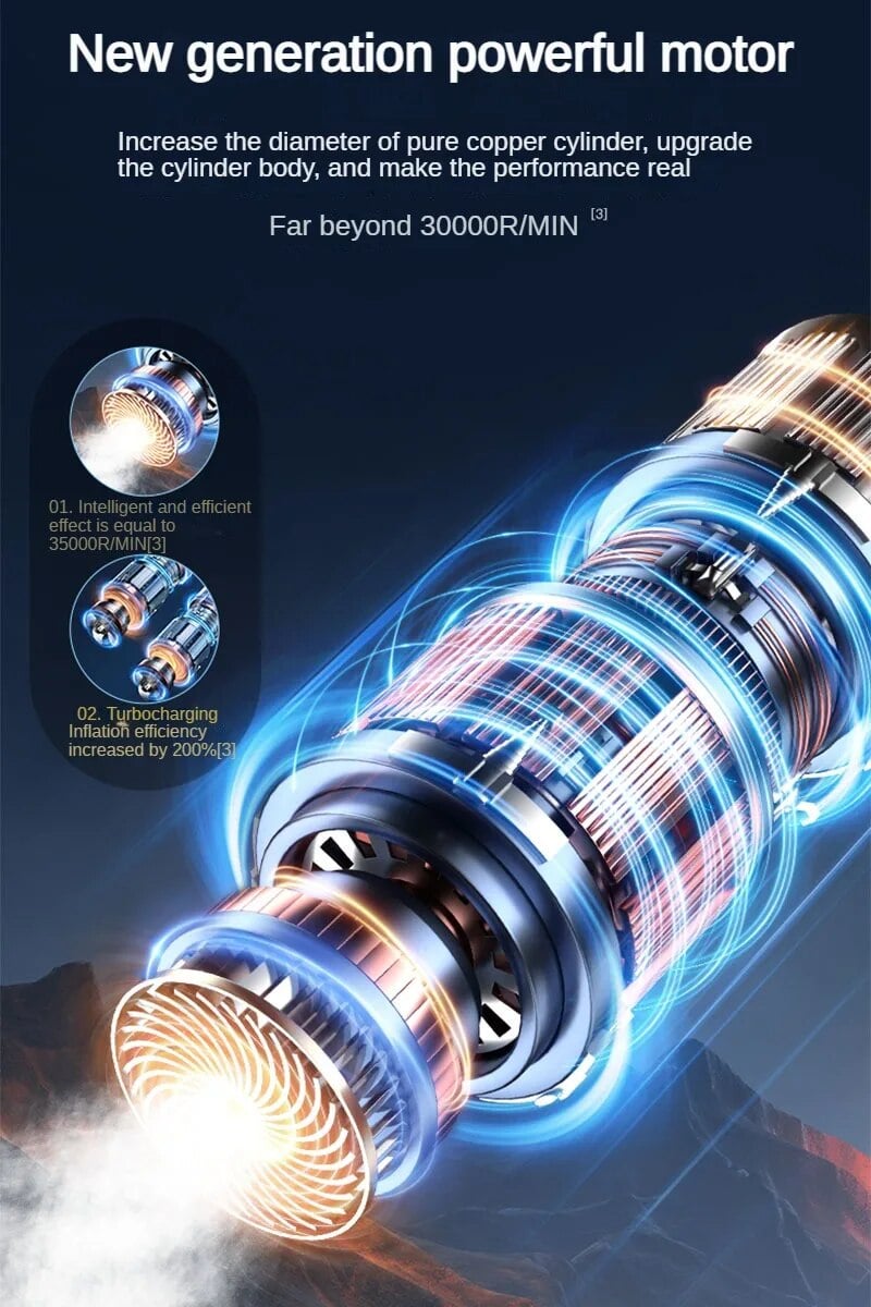 The air compressor portable provides maximum pressure of 150 PSI and airflow of 38L/Min! Only need 4 mins to fully inflate a car tire (0-36PSI) or 30s to refill car tire in daily situation (28-35PSI), This portable tire inflator for car definitely a good helper for solving emergencies on the way.