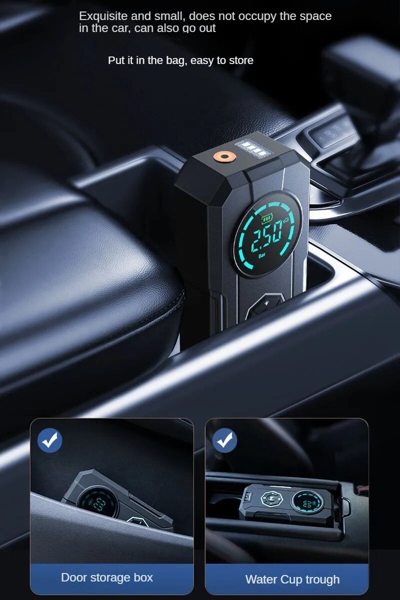 6000mAh battery: Built-in 6000mAh battery, can also be connected to the cigarette lighter port for power supply.